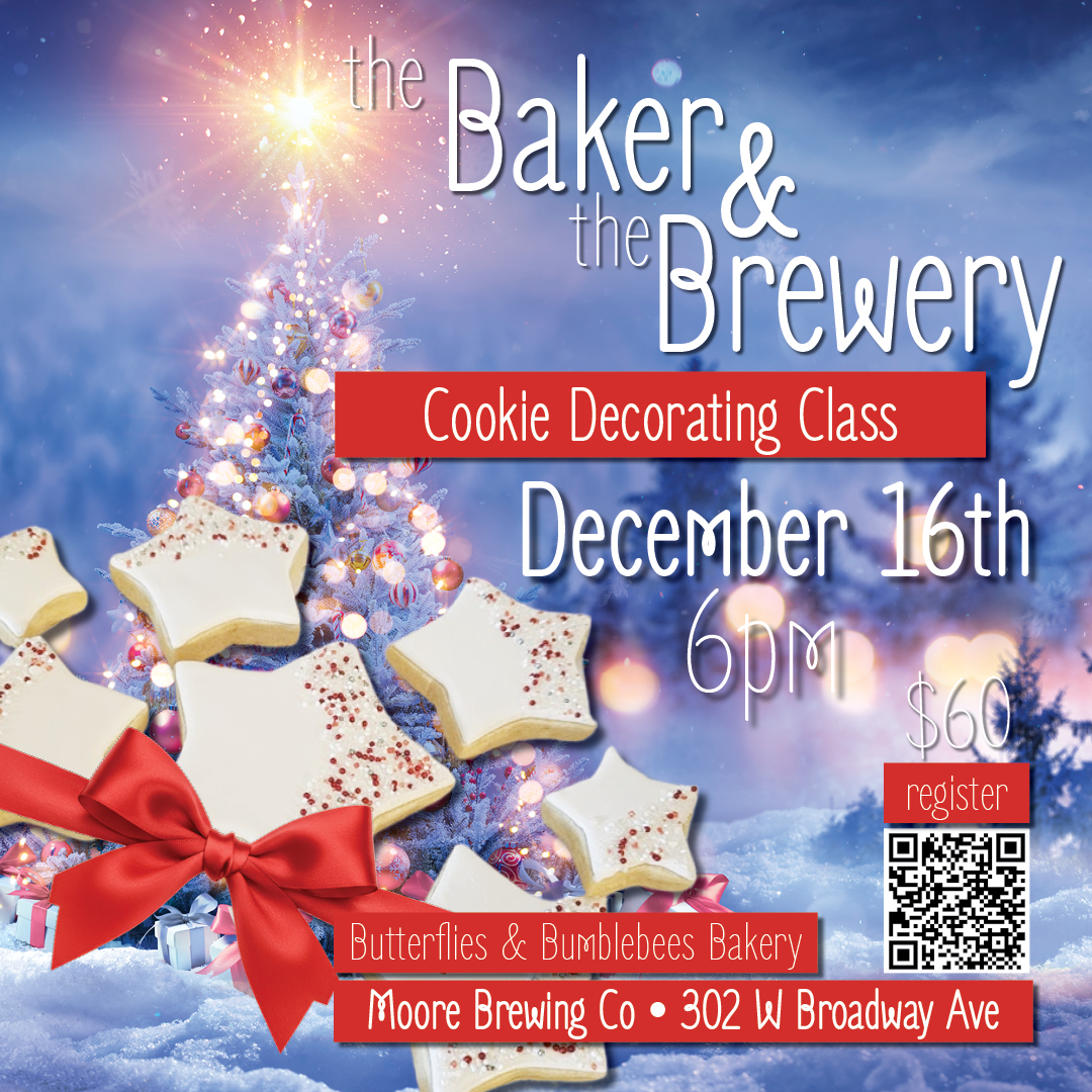 Moore Brewing Co 302 W Broadway Ave, Moses Lake, WA, United StatesMake magic in our Christmas Cookie Decorating Class! Decorate adorable holiday cookies in a fun and festive atmosphere. Reserve your spot today!